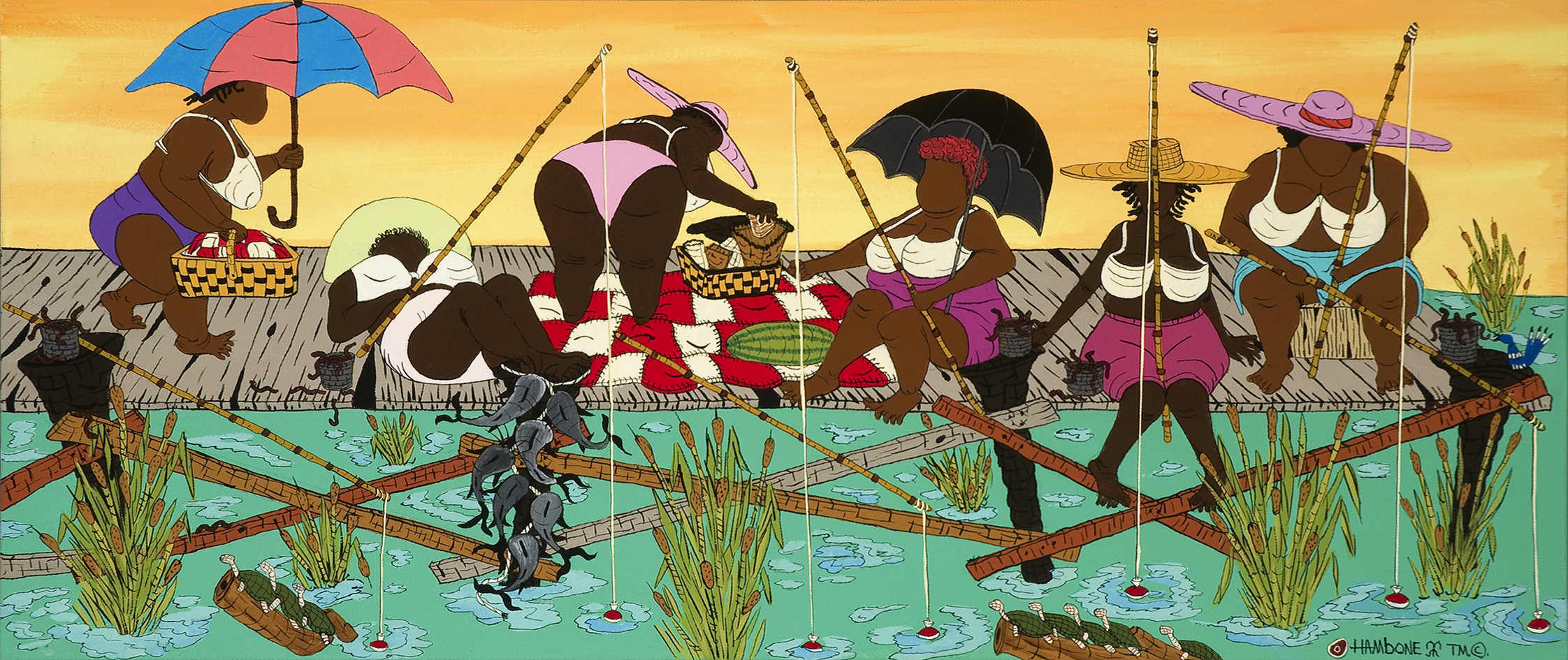 Fishing Day Bliss | Stretched Canvas Print, Colorful Wall Decor, African American Art, Farm Themed Art, Gift for Nature Lovers -